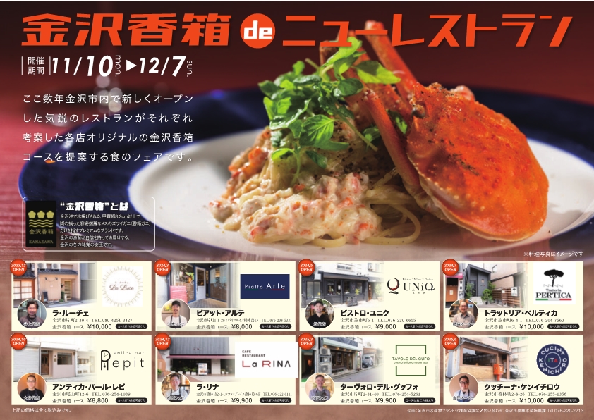 金沢の漁師が自信を持ってお届けするプレミアムなブランド「金沢香箱」を、近年オープンした金沢市内人気飲食店で堪能できるフェアを開催!